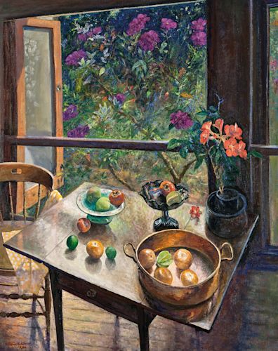 Verandah with tea, scones and fruit, 2016
